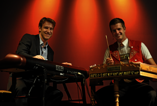 Nicolas Senn und Elias Bernet live auf der Bühne Wenn der Hackbrettler Nicolas Senn auf den ...